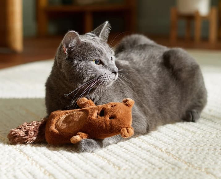 Ah, the smell of pine, the stars, and nothing but you, your kitty and the great outdoors. Oh, and this bear kicker toy filled with catnip.